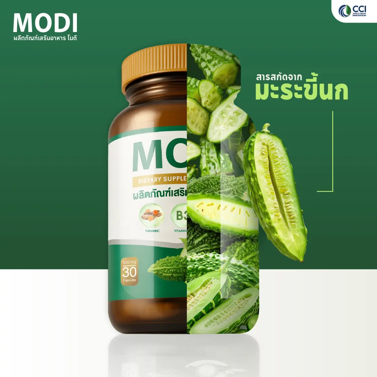 MODI เป็นผลิตภัณฑ์เสริมอาหารที่พัฒนาจากสารสกัดเข้มข้นของ มะระขี้นก (Momordica charantia) ซึ่งมีสารพฤกษเคมีสำคัญอย่าง ชาแรนติน (Charantin) ร่วมกับสมุนไพรธรรมชาติอื่นๆ เพื่อช่วยสนับสนุนการดูแลสุขภาพในชีวิตประจำวัน โดยเฉพาะด้านการจัดการระดับน้ำตาลในเลือดให้สมดุล